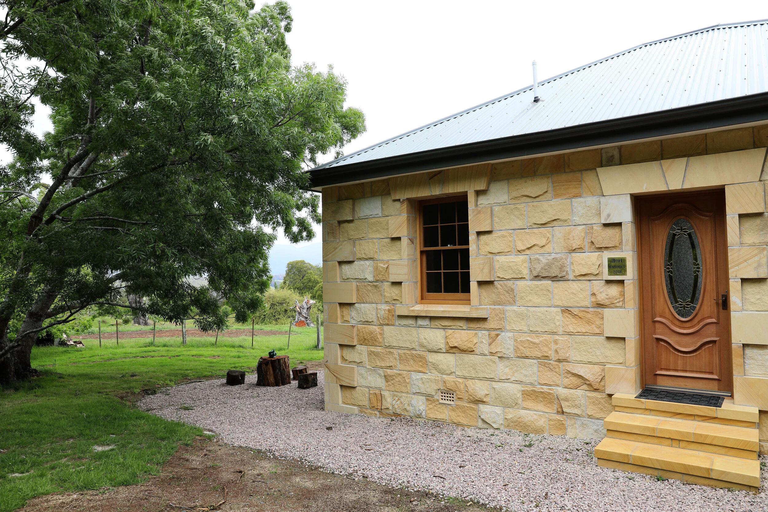 “The Ariel Cottages are solid Tasmanian sandstone buildings, built faithful to the early colonial heritage style, and perfect for couples looking for that serene rural escape.”